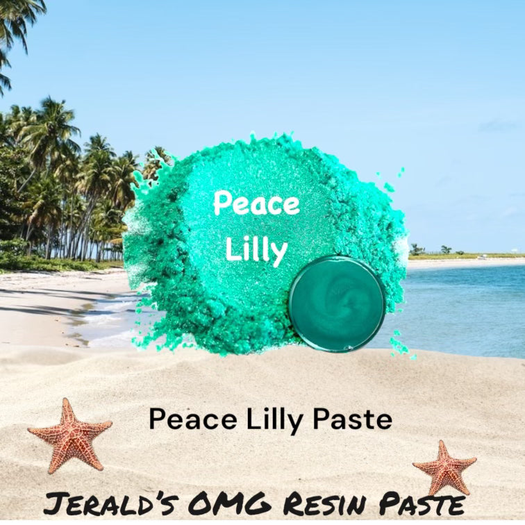 Peace Lilly, an iridescent green resin paste. Reflecting varying shades under light,